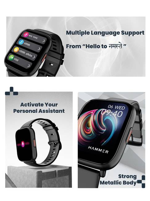 Bluetooth Calling Smart Watch. Hammer Fit+ enables you to make and answer voice calls directly from your watch, and comes with an inbuilt mic and speaker. You can make calls by dialing the number through the dial pad, or even access the favorite contacts synced to the watch. Note: Phone and smartwatch need to be paired. Now Activate your realtime voice assistant Google, Siri on your phone through your Bluetooth watch